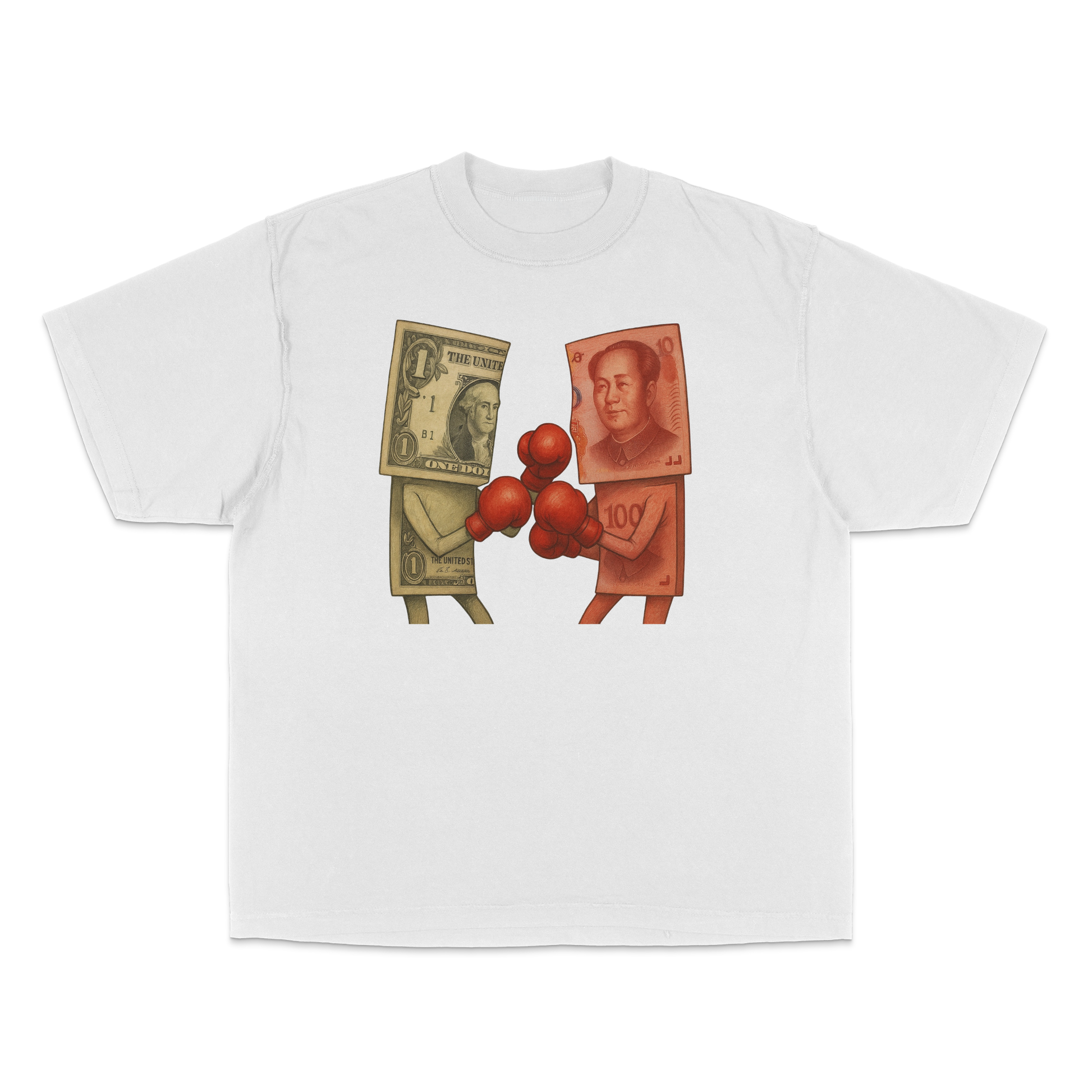 Currency Exchange - CMYK print of boxing currencies. Minimum order of 50 shirts.