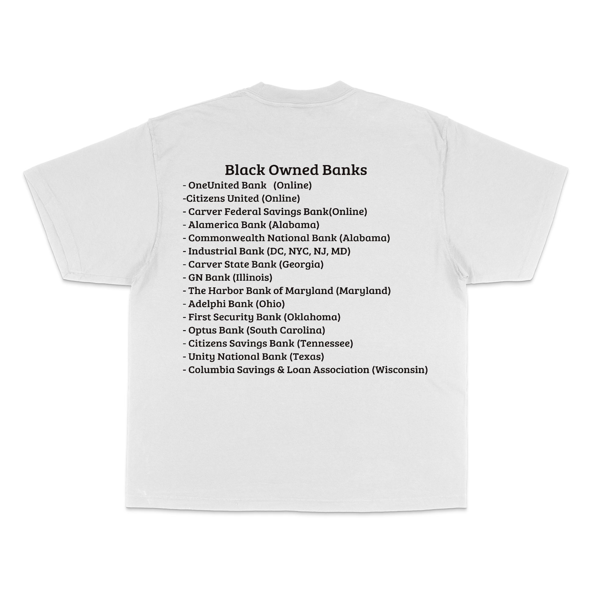 Clickety Clank - 2 Color front and back print promoting black owned banks. No minimum.