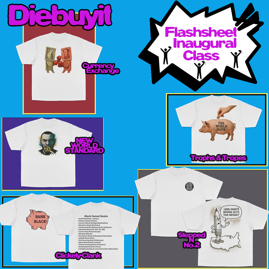New - World Standard - Multi color print challenging the validity of a world monetary system ran on crypto. Minimum order of 25.